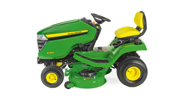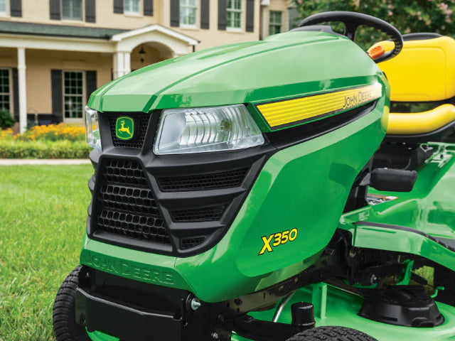 Der John Deere X350 ist auf Langlebigkeit ausgelegt. Der robuste Stahlrahmen und das hochwertige Mähdeck sorgen für lange Lebensdauer und Zuverlässigkeit auch unter harten Bedingungen. Darüber hinaus machen es der wartungsarme Motor und die wartungsarmen Komponenten einfach, den Mäher in einem Topzustand zu halten.